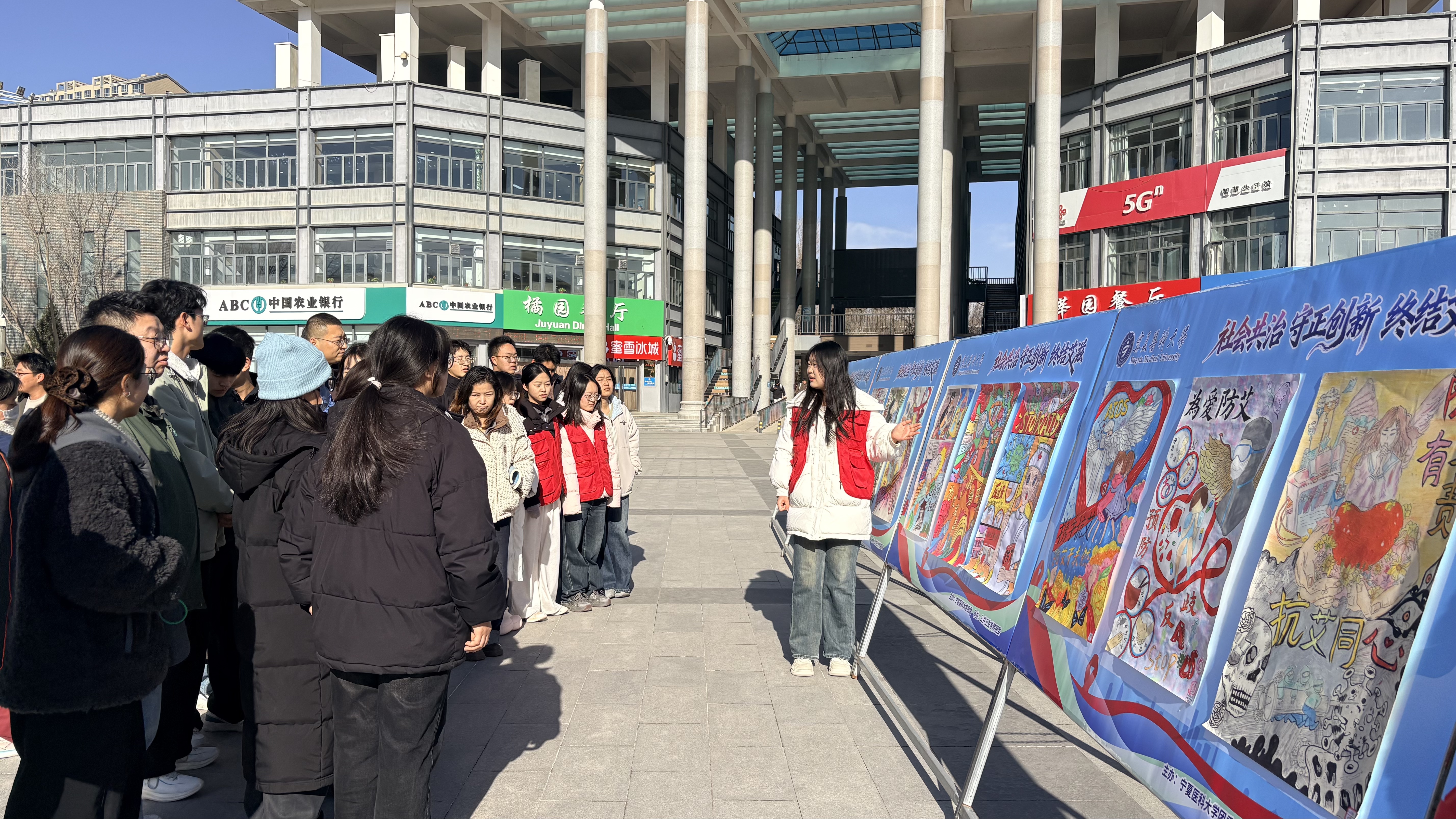 举办“画说防艾,绘暖人心”主题海报创作比赛,鼓励学生树立“自身健康第一责任人”意识,以艺术形式传递防艾理念。活动共征集作品63幅,青年学子以画笔为媒,围绕知识普及、关爱支持、反对歧视等主题进行创作,展现积极向上的青春姿态。优秀作品在雁湖校区尚德广场集中展出,志愿者结合每幅作品现场讲解创作立意与防艾内涵,吸引众多师生驻足观看、交流思考。