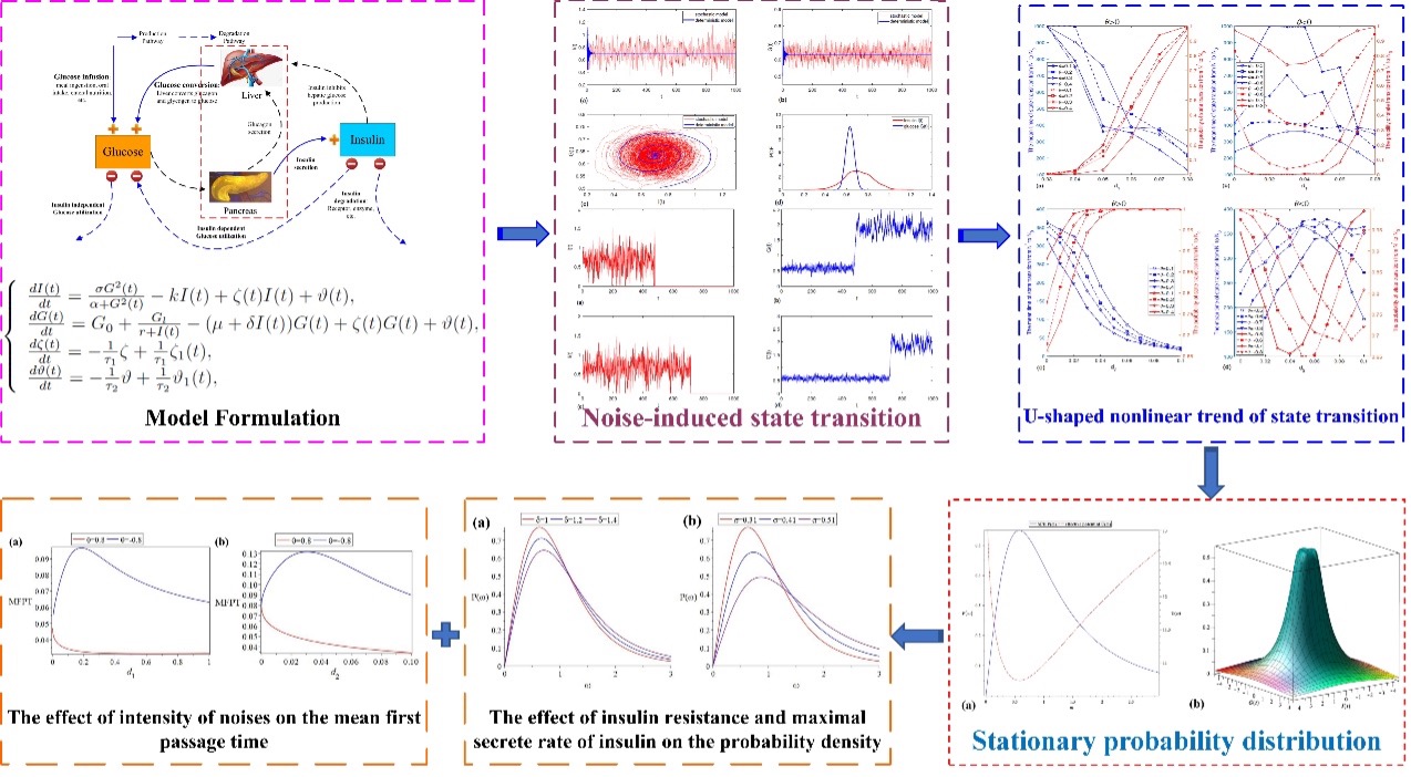 2025年4月28日,我校赵瑜课题组在Chaos, Solitons and Fractal期刊(IF=5.6,中科院1区,Top文章)发表了题为How to maintain long-term euglycemia in a noisy environment: insight from a stochastic glucose-insulin metabolism model with correlated Gaussian colored noise的研究论文,揭示了非线性噪声增强稳定性可能是个体在体内外随机因素影响下维持血糖稳态的机制,这种非线性现象也从动力学角度解释了适度运动能够减缓不规律饮食带来不良影响的内在作用过程。