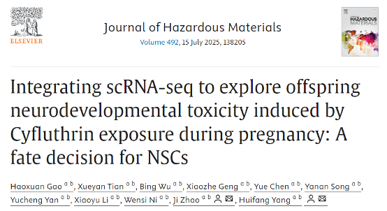 Journal of Hazardous Materials:杨惠芳团队团队运用单细胞测序技术,在单细胞分辨率下阐明孕期农药暴露如何干扰神经干细胞命运决定,揭示发育神经毒性的全新细胞图谱机制。