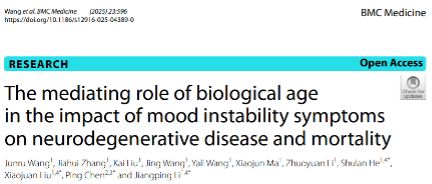 BMC Medicine:李江平团队研究揭示情绪不稳定通过加速“生物年龄”老化进而推高神经退行与死亡风险,开辟精神-衰老研究新通路。