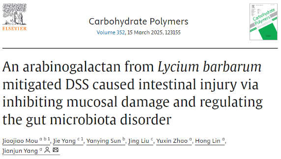 Carbohydrate Polymers:杨建军团队发现枸杞阿拉伯半乳聚糖通过抑制粘膜损伤和调节肠道菌群紊乱减轻DSS引起的肠道损伤。