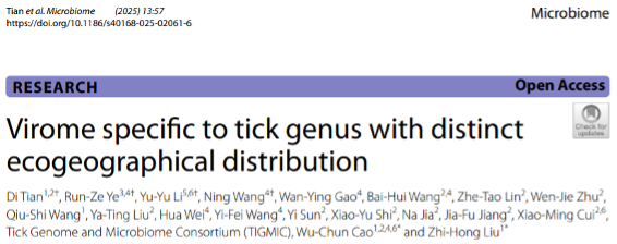 Microbiome:刘志宏团队首次在宁夏系统解析蜱虫属特异性病毒组并揭示其地理分布规律,为新发蜱传病毒病预警奠基。