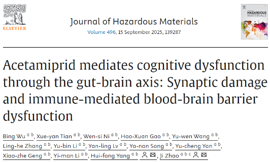 Journal of Hazardous Materials:杨惠芳团队揭示农药乙酰胺磷通过肠-脑轴双重破坏血脑屏障与突触功能导致认知障碍,为神经毒理学提供全新机制视角。