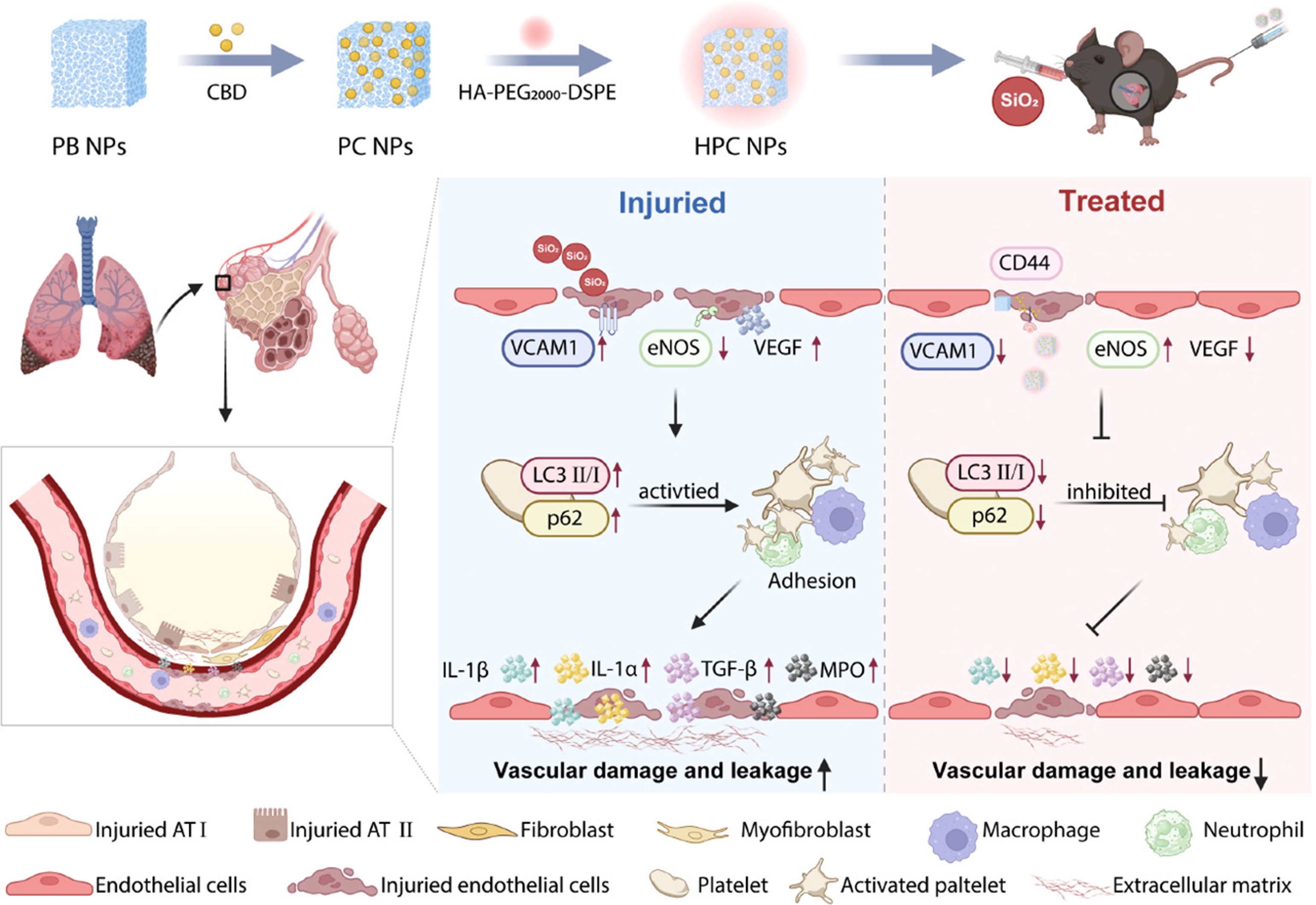 Chemical Engineering Journal:刘志宏团队开发基于大麻二酚的靶向纳米新疗法,有效对抗矽肺病相关血管损伤与血栓风险。