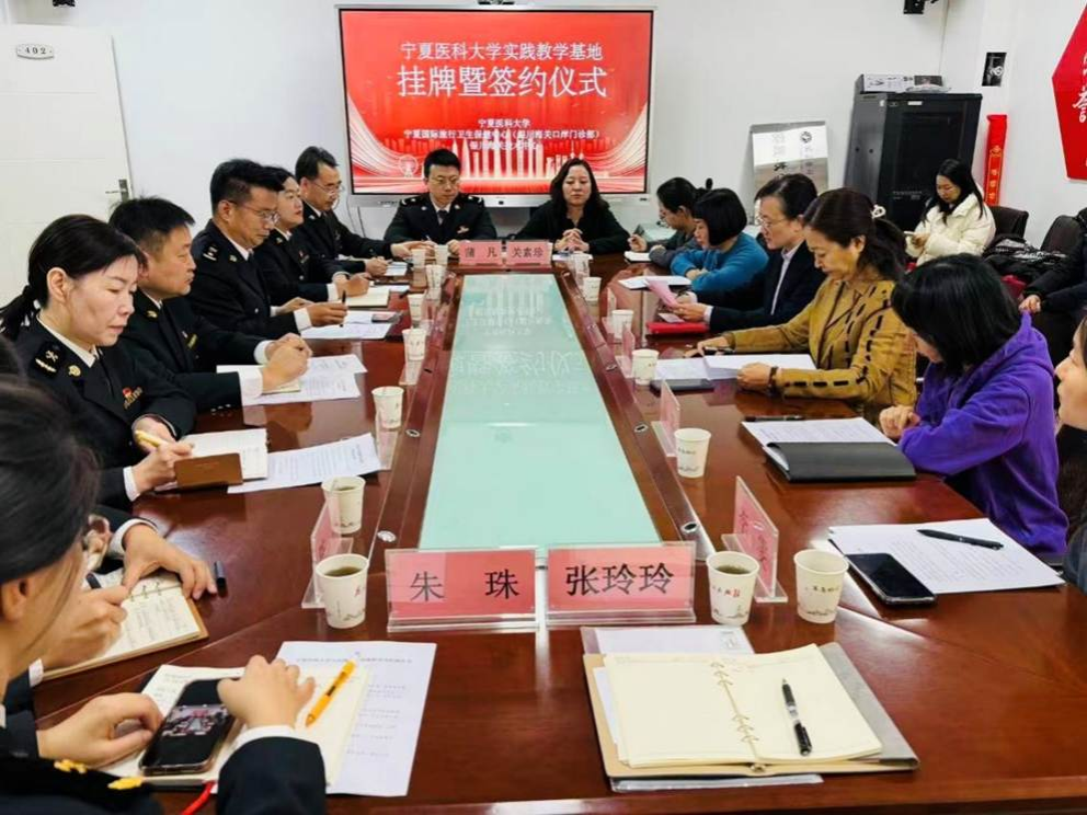 挂牌仪式上,宣读了《宁夏医科大学关于同意银川海关技术中心、宁夏国际旅行卫生保健中心(银川海关口岸门诊部)为我校实践教学基地的批复》。公共卫生学院负责人与银川海关技术中心主任、宁夏国际旅行卫生保健中心(银川海关口岸门诊部)负责人共同签署了合作协议。