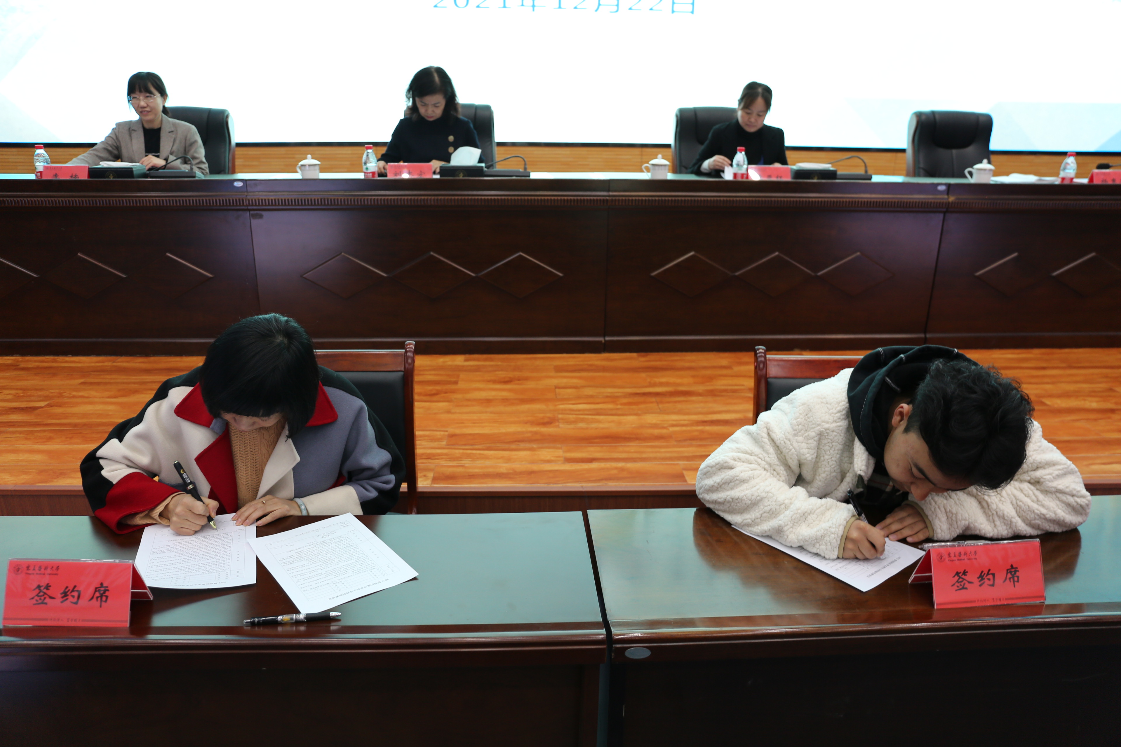 会议期间,举行了导师一贯制签约仪式,学校各级领导、学院领导班子为兼职班主任颁发了聘书。本科生导师一贯制教师代表李江平副教授、兼职班主任教师代表赵吉副研究员、学生代表周俐妘做了表态发言。