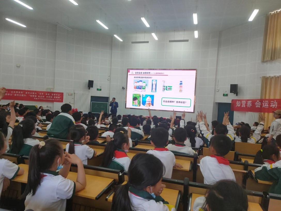 杨建军围绕今年中国学生营养日主题“知营养 会运动 防肥胖 促健康”进行了主题宣讲。师生认真聆听宣讲内容,积极参与活动互动,活动现场氛围十分活跃。