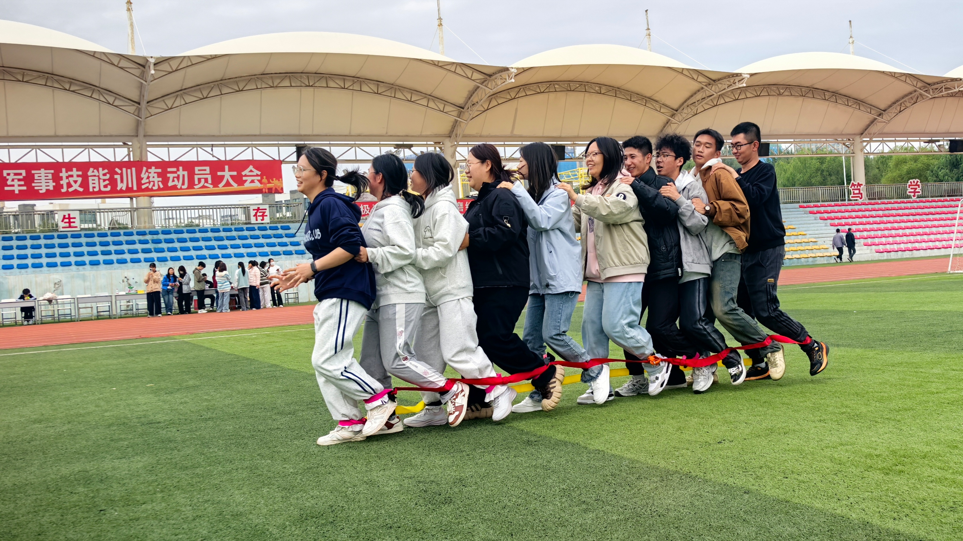 “民族聚力跑,智慧大比拼”,让“各民族像石榴籽一样紧紧抱在一起”的内涵变得可触可感。场地内,“一二、一二”的口号声铿锵有力,绑着同根绳索的同学们相互搀扶、步伐整齐,每一步都凝聚着对彼此的信任。那些缠绕在脚踝的绳索,成为了象征民族团结的“纽带”,它让同学们真切懂得了各民族的发展路上缺一不可的道理。这场奔跑不仅是体力的协作,更是心灵的契合,在共同发力、彼此托举中,“团结”融入每一步的行动。