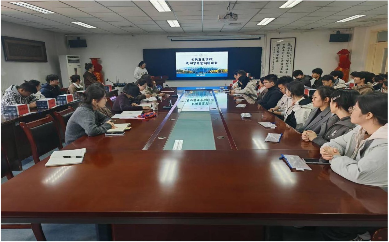 为鼓舞2026届考研学子坚定信念、缓解备考压力,以饱满昂扬的姿态迎接即将到来的全国硕士研究生招生考试,11月14日上午,公共卫生学院在臻善楼会议室举办“考研助力、暖心祝福”慰问活动。学院党委书记杨惠芳、党委副书记马星、李婉璐,副院长关素珍,全体学工人员及2026届考研学生代表共同参与。活动由2021级专职辅导员阿依古丽主持。