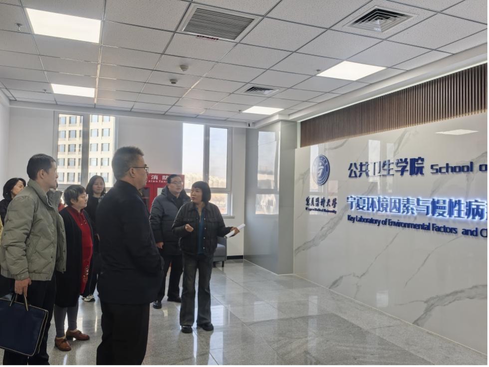 11月21日下午,自治区科技厅马俊理处长一行在学校科技处、公共卫生学院领导班子成员等陪同下,莅临宁夏环境因素与慢性病控制重点实验室进行视察调研,指导实验室建设工作。