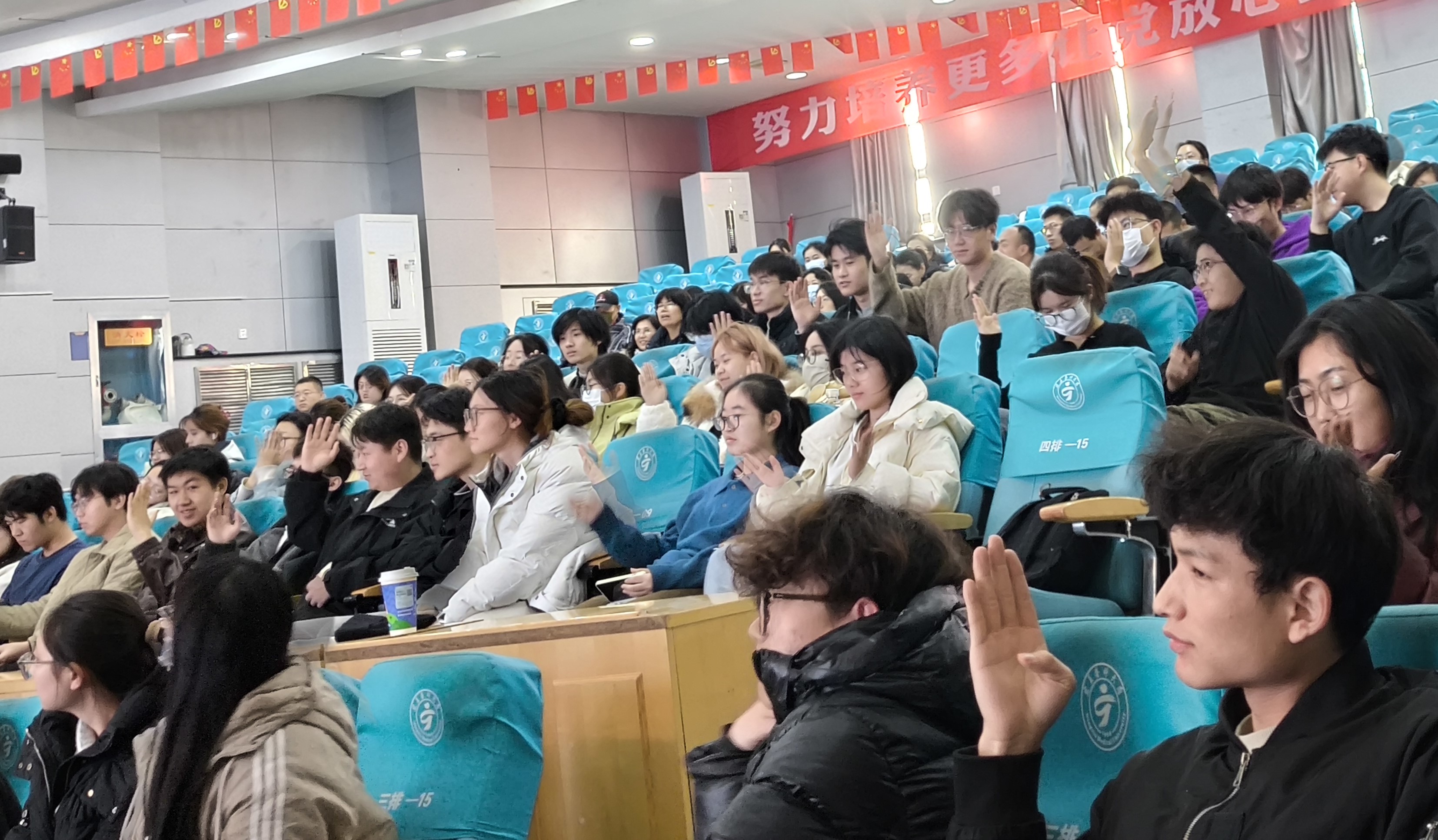 12月5日,学校党委副书记韩蕃璠在应谦楼启思报告厅为联系班级2022级预防医学1班讲授“形势与政策”课。公共卫生学院班子成员及200余名师生代表参加。