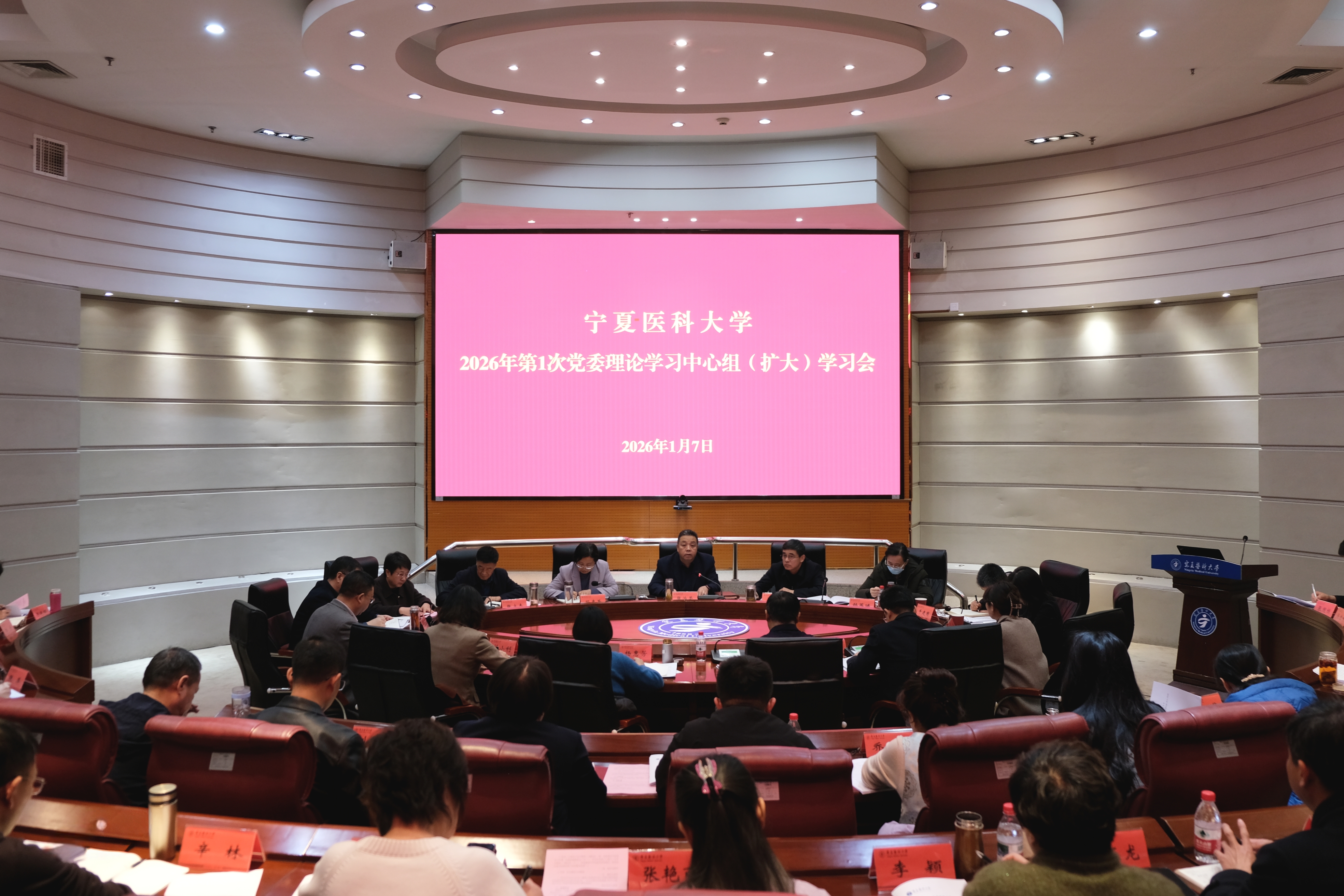 1月7日,学校在雁湖校区正德楼国际会议厅召开2026年第1次党委理论学习中心组(扩大)学习会,强调要深入学习贯彻习近平新时代中国特色社会主义思想和习近平总书记考察宁夏重要讲话精神,全面贯彻落实党的二十届四中全会精神和自治区党委十三届十一次、十二次全会精神,锲而不舍落实中央八项规定精神,以优良作风凝心聚力、真抓实干,为学校“十五五”规划高起点开局、高质量起步打牢坚实保障。学校党委书记张治荣主持会议。