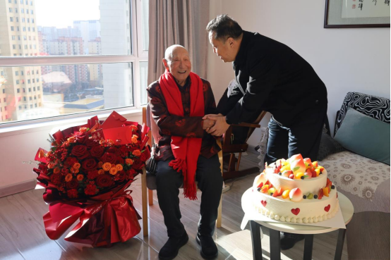 1月13日,学校党委书记张治荣一行前往离休干部白云峰同志家中走访慰问,为百岁老党员、老同志送上鲜花和全校师生的诚挚祝福,共同庆贺期颐之喜。