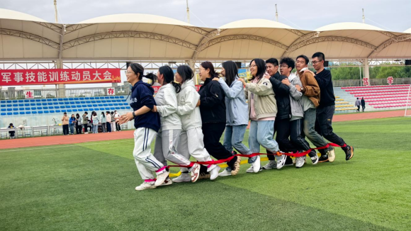 在“足够同心,民族答当乐”环节,旋转后的踉跄与射门命中的欢呼交替上演,思索“中华民族共同体核心内涵”时的专注,更让运动乐趣多了份思想重量。在“民族聚力跑,智慧大比拼”环节,“一二、一二”的口号声铿锵有力,绑着同根绳索的同学们相互搀扶、步伐整齐,每一步都凝聚着对彼此的信任,那些缠绕在脚踝的绳索,成为了象征民族团结的“纽带”。