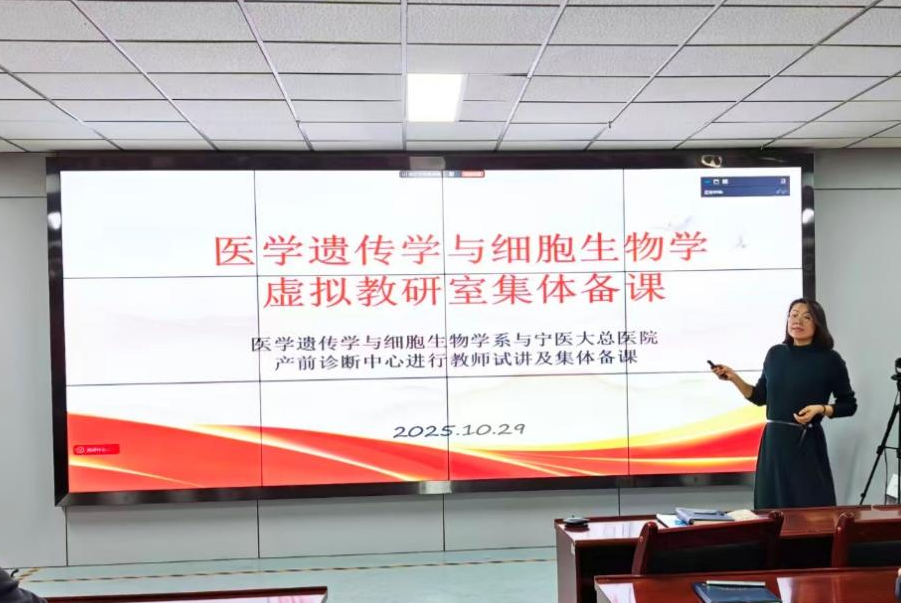 活动中,医学遗传学与细胞生物学系主任王娅娜详细讲解了医学遗传学课程的教学目标、内容体系及教学改革思路。李美娟就“临床中遗传病的诊断与治疗”进行试讲,通过真实病例生动呈现遗传病诊断流程、分子检测技术及临床干预方法,展示了临床遗传学的教学价值。于辛酉结合临床经验分享了典型遗传病病例,为教学案例优化提供了鲜活素材。参加人员围绕教学内容设计、案例选择、课堂呈现等展开热烈研讨,针对课程体系建设、教学评价机制、基础-临床融合策略等方面提出意见建议。
