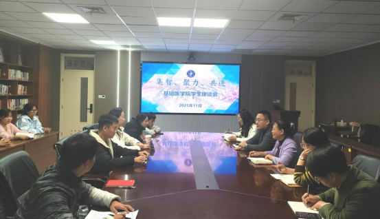 11月3日,基础医学院在厚生楼组织召开“集智、聚力、共进”学生座谈会。学院领导班子成员、全体辅导员及各层次学生代表参加,围绕学生成长需求与学院发展建设展开深入交流。会议由学院党委委员、专职组织员李菲主持。