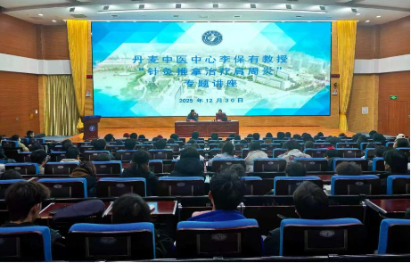 12月30日,中医学院特邀丹麦中医中心主任、丹麦中医专家李保有教授在雁湖校区尚行会议中心开展题为 “针灸推拿治疗肩周炎” 的专题学术讲座。学院教师代表及 2025 级本科学生聆听了讲座。