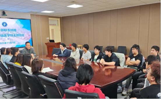 班长从学习成绩、班级活动、科研参与等方面总结汇报了本学期班级整体情况。学院副院长李岩结合基础医学学科特性与医药行业趋势引发同学们对“先就业还是先升学”的思考。他讲到基础医学作为医学研究基石,在生命科学领域重要性凸显,科研与医疗机构对高层次人才需求持续增长,建议有科研兴趣、愿深耕专业者优先升学,通过硕博阶段提升科研与学术能力,也希望尽早就业者需明确职业方向,本科阶段积累临床实践、实验操作等技能,增强就业竞争力。互动交流中,同学们围绕升学备考、就业选择、跨专业发展等方面踊跃提问,积极交流,明确了未来首要保持进取心态、提升综合能力。
