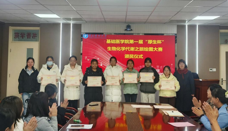 2026年1月4日,基础医学院第一届“厚生杯”生物化学代谢之旅绘图大赛颁奖仪式在厚生楼书香学苑举办。基础医学院党委书记、生物化学与分子生物学系主任姚青、副主任李建宁、学系任课教师及参赛学生代表齐聚一堂。
