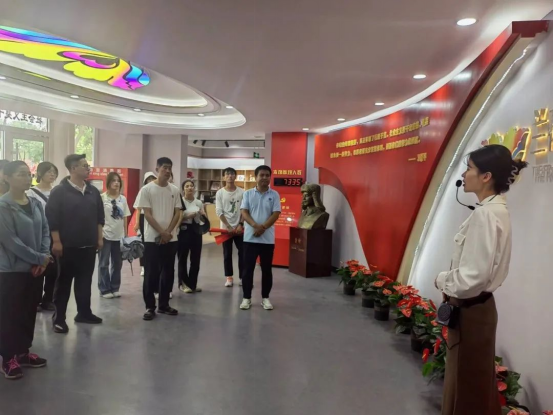 下午,实践团成员们来到了利通区金星镇金花园社区,“沿着总书记足迹,感悟思想伟力”。大家先后参观了兰花芬芳志愿服务中心展览馆、金花园社区党群服务中心、社区广场,现场感受习近平总书记视察金花园社区时的热烈场面,重温习近平总书记视察时的深情寄语,深切感悟习近平新时代中国特色社会主义思想所蕴含的坚定理想信念、真挚为民情怀、高度历史自信、无畏担当精神。通过讲解员的精彩讲解和一件件实物、一张张图片、一组组数据、一块块奖牌,学习感悟兰花志愿服务队几十年如一日,坚守“行胜于言”和“奉献、友爱、互助、进步”的志愿服务精神;学习社区党支部凝聚各族群众团结和睦、手足相亲、守望相助,唱响民族团结进步主旋律, 像石榴籽紧紧抱在一起,进一步铸牢中华民族共同体意识,以实际行动共建美好家园。