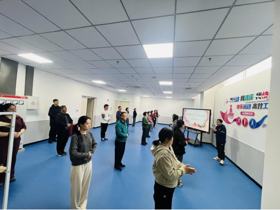 活动邀请了体育健康学院杜鹏英老师进行现场教学。在杜老师的专业讲解和分步示范下,大家从基础动作学起,逐步掌握八段锦舒缓圆活、形气神兼修的招式要领。教职工们认真模仿、静心体会,在一呼一吸、一招一式间放松身心、涵养精神。随后进行的集体展演,动作整齐、神情专注,展现出教职工积极向上的精神风貌。