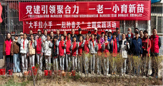 为深入践行习近平生态文明思想,积极响应党和国家及自治区党委全民义务植树号召,3 月 31 日上午,宁夏医科大学离退休干部党委携手同心苑社区党委,以党建聚合力、以 “五老” 传精神、以青春续薪火,在同心苑社区联合举办“党建引领聚合力 一老一小育新苗”主题党日活动。