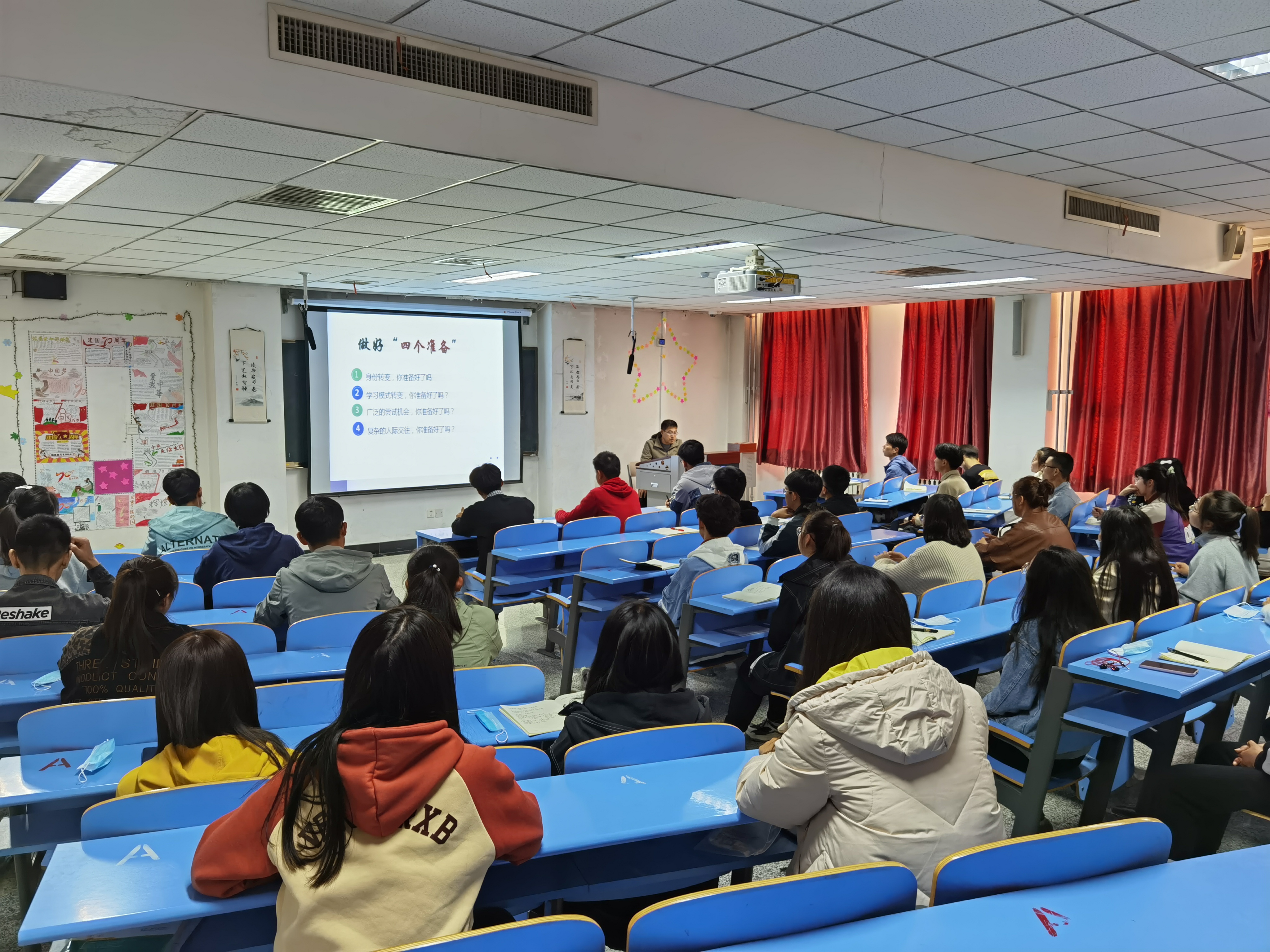 连院长以“扬帆起航,从‘理’出发”为题开展专业思想教育,他向新生们提出了制定好大学四年自己的人生规划和学习目标,并给予了如何规划四年生活的若干意见。最后,辅导员再次强调大学生活需要遵守的规章制度和注意事项,以保证2020级新生有个美好的大学生活。