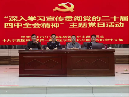 11月14日,学校第一临床医学院雁湖校区学生党支部在第十四个“122全国交通安全日”到来之际,联合银川市公安局车辆管理所党支部在银川市交通安全教育基地开展“珍爱生命,安全第一”主题党日活动。支部党员及入党积极分子参加活动。