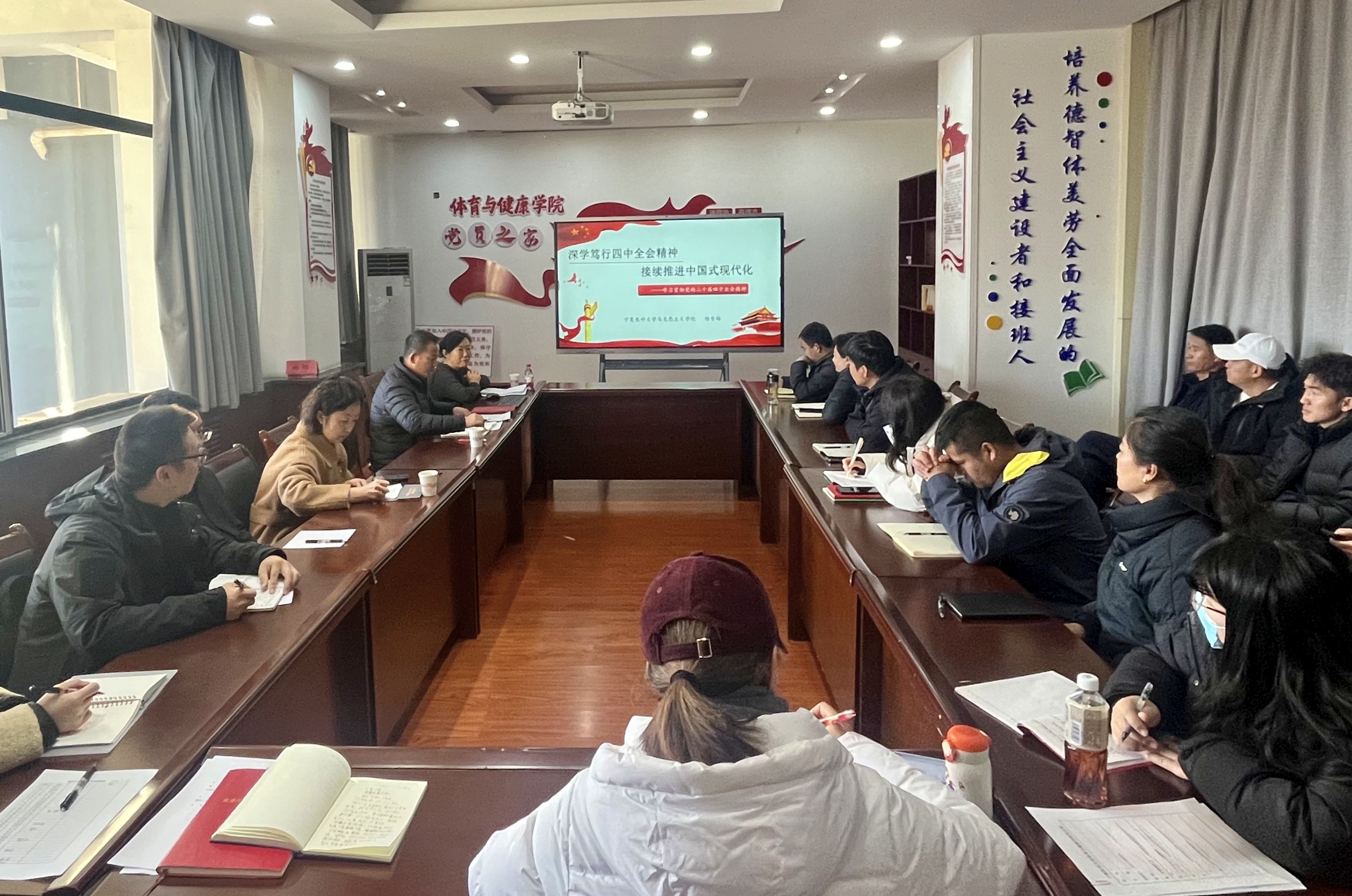 11月25日,学校学习贯彻党的二十届四中全会精神宣讲团在雁湖校区弘毅体育馆“党员之家”为体育与健康学院、研究生院作宣讲。体育与健康学院、研究生院领导班子成员、全体教职工参加。