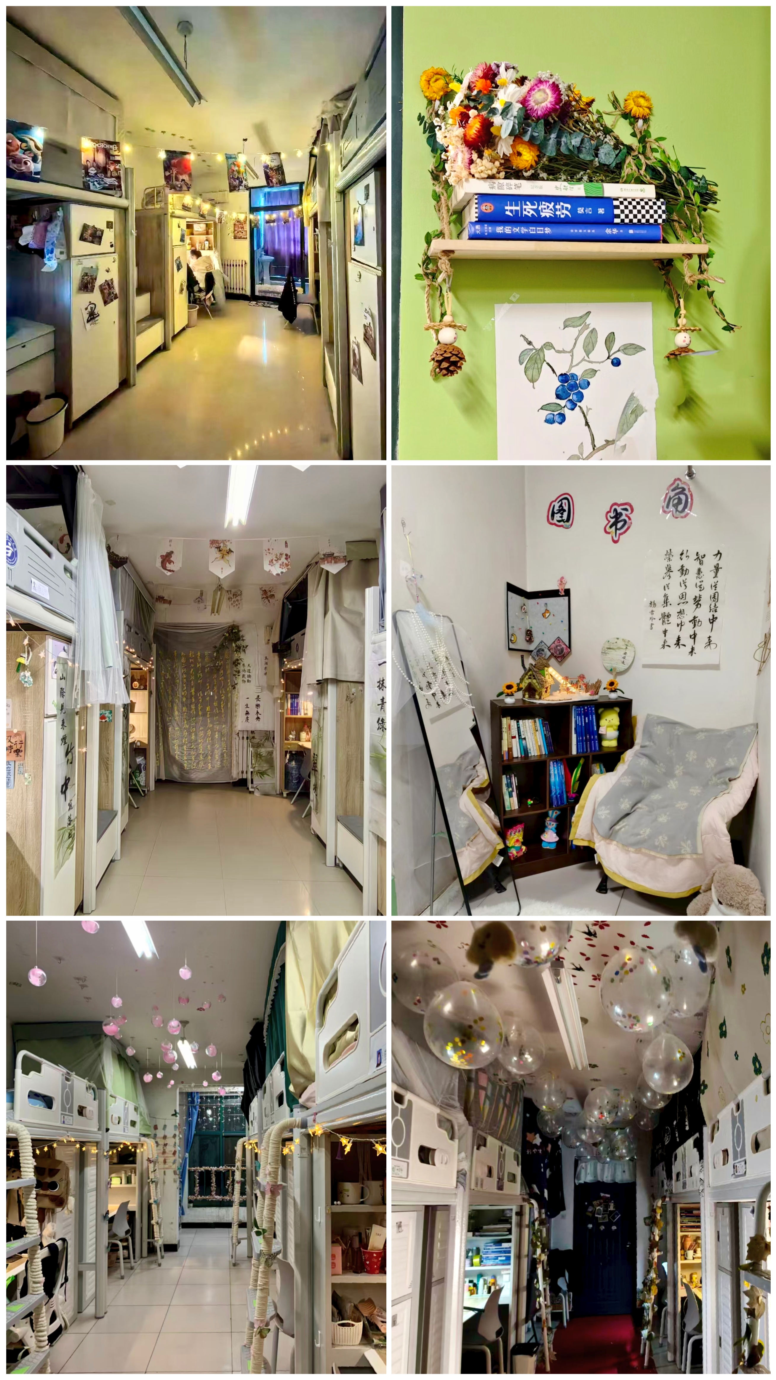 本次文化节活动围绕“有爱、整洁、创意、美观”的主题,引导同学们以宿舍为家,用巧思装点属于彼此的青春天地。有的宿舍以绿植和手作装点,打造简约治愈的休憩空间,让生活空间充满自然气息;有的将热爱融入设计,用海报、标语和照片墙,定格青春态度与专属记忆;更有宿舍以动漫、花艺、暖光灯为主题元素,让零食与玩偶也成为宿舍中不可或缺的温暖点缀。除了宿舍环境营造,本次活动还设置了故事征集、制作视频等互动环节,同学们用照片和视频记录下朝夕相处的点滴温暖与欢声笑语,展现出当代青年大学生积极向上的精神风貌与和谐友爱的宿舍氛围。