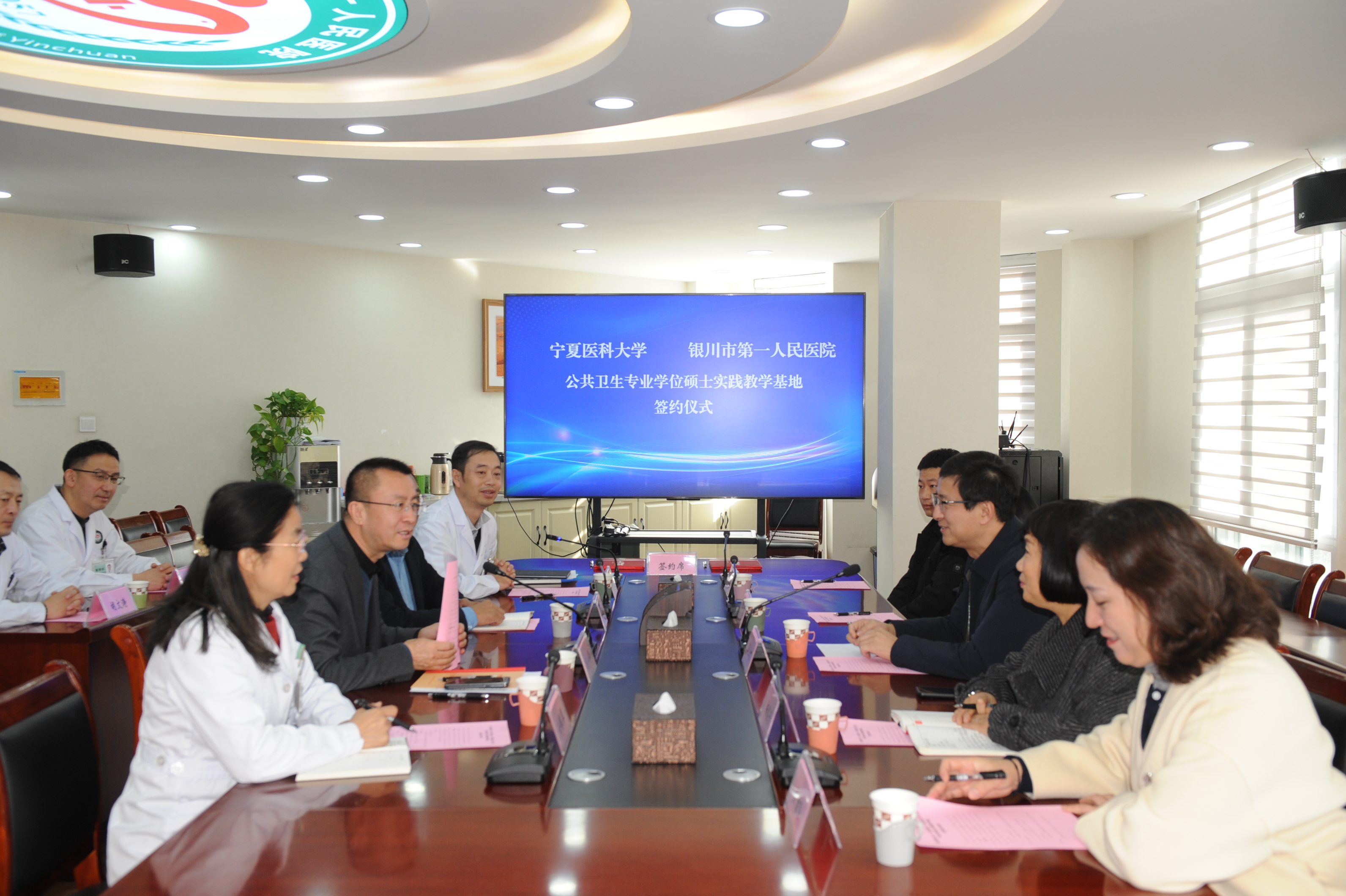 11月28日,公共卫生学院与银川市第一人民医院在医院综合办公楼四楼会议室举行公共卫生专业学位硕士研究生实践基地签约仪式。学校研究生院(研究生工作部)、公共卫生学院、第二临床医学院(银川市第一人民医院)负责人参加仪式。