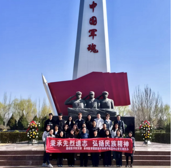 3月31日,基础医学国家级实验教学示范中心党支部与学生党支部40余名党员师生赴银川红色主题纪念园(军魂园)开展“秉承先烈遗志、弘扬民族精神”主题党日活动。