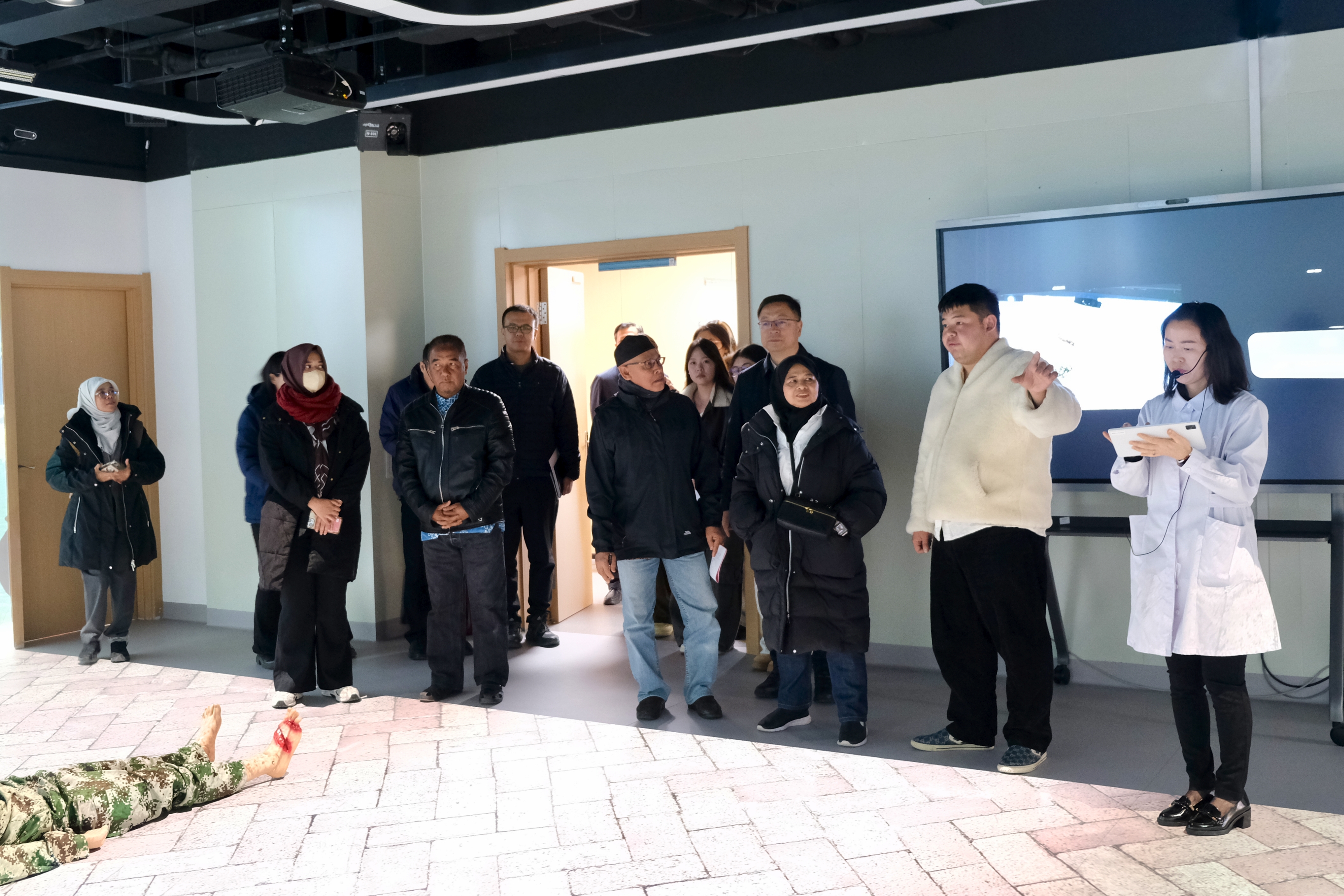 期间,代表团一行参观了学校沙盘、知行楼临床技能培训中心。