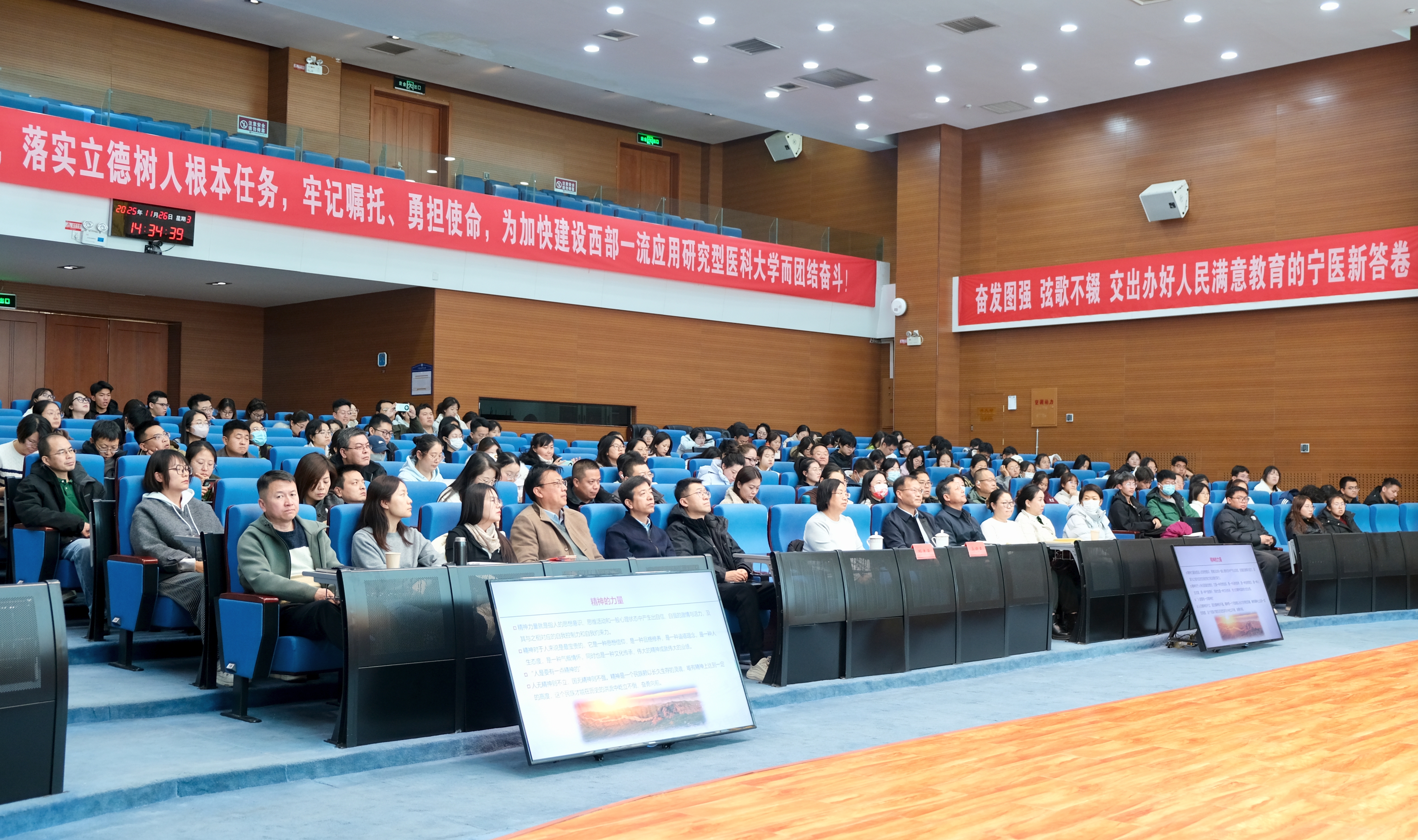 活动邀请学校荣获全国(全区)五一劳动奖章、自治区先进工作者及教学名师进行现场讲授。马克思主义学院朱国明副教授以理论为基,系统阐释劳模精神与中国共产党人精神谱系的内在联系,解读了“爱岗敬业、争创一流、艰苦奋斗、勇于创新、淡泊名利、甘于奉献”的核心内涵;第一临床医学院(总医院)哈春芳教授分享了临床一线的奉献与担当,通过几代宁医人“艰苦奋斗 无私奉献”的宁医精神诠释医者仁心;第一临床医学院(总医院)武永利教授讲述了三十余年来深耕专业、教学相长,干一行爱一行的坚守历程;药学院马学琴教授结合枸杞活性成分研究实践,充分展现科研工作者的执着追求。四位宣讲人从理论阐释、临床实践、科研探索等不同维度,用真挚的奋斗故事和深刻的职业感悟,让现场师生深刻领会劳模精神的时代价值,为参会师生带来了一场生动的思政大课。