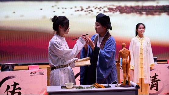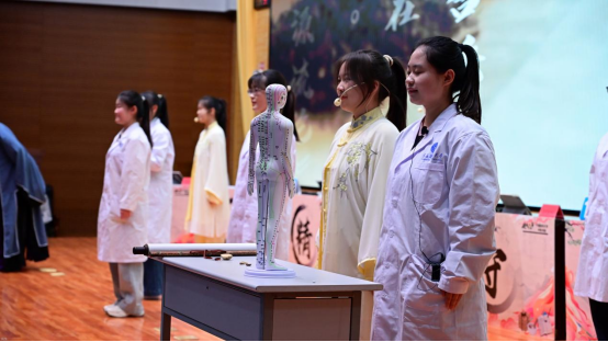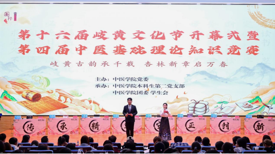 随后,中医基础理论知识竞赛在“医道薪传”展演中拉开帷幕。经过预赛的激烈角逐,24名学生组成的8支队伍进入决赛,参赛队伍通过“必答题、抢答题、风险题”三个环节,围绕中医基础理论、中药学、中医诊断学等内容展开比拼,选手们沉着应对、应答精准,展现出扎实基础,赛场气氛热烈,充分展现了中医学子的专业素养和优良学风。