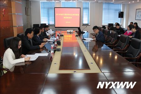4月19日,学校在正德楼第五会议室召开2016年宁夏哲学社会科学规划项目申报论证会。邀请自治区党委宣传部理论处李军处长、宁夏大学马克思主义学院院长李斌教授等5名校内外专家对我校申报的2016年宁夏哲学社会科学规划项目进行评审。各项目申请人及课题学术骨干共计30余人参加了论证会。