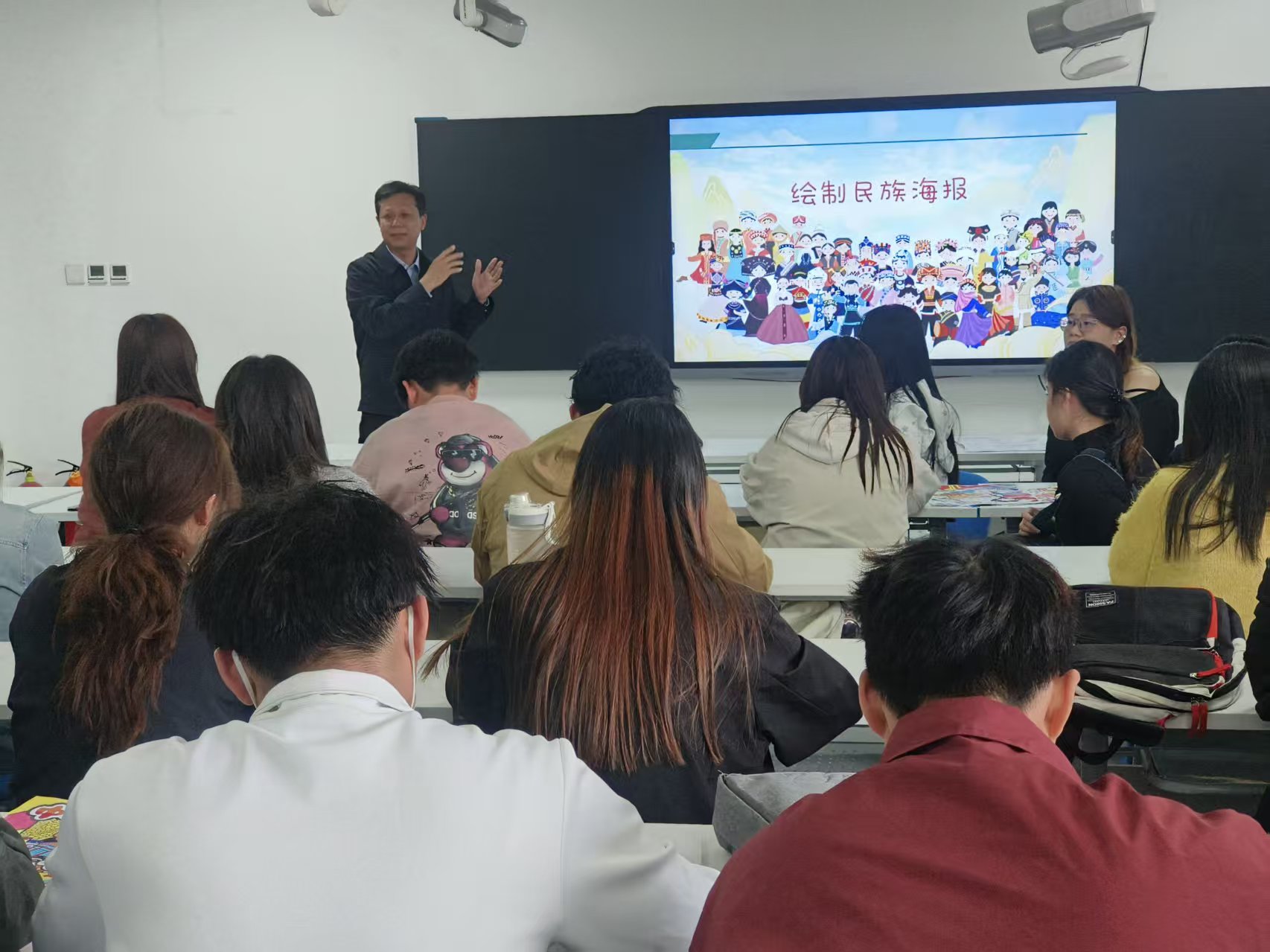 活动中,同学们介绍各民族文化风俗,增进了大家对各民族文化的了解与认同。宁夏民族团结先进事迹分享环节,通过鲜活案例向同学们传递了各民族手足相亲、守望相助的正能量。在小组协作绘制民族团结海报时,同学们将对各民族和谐共处、同心同行的美好期许融入画笔,让民族团结意识深深扎根心中。活动期间,联系班级的领导干部深入参与、暖心寄语,强调民族团结是社会稳定、国家发展的重要根基,勉励同学们争做民族团结的践行者与守护者。