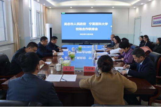 12月26日,吴忠市人民政府与宁夏医科大学校地合作联席会议在我院召开。会议全面总结合作成果,对接发展需求,共商“十五五”时期校地深度融合发展新蓝图。宁夏医科大学党委常委、副校长韩怀钦,吴忠市副市长尚自刚出席会议并讲话。