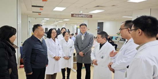 慰问期间,张治荣一行先后走进医院东楼门诊大厅、康复中心,与一线医务人员面对面交流,详细了解学科建设、诊疗服务及队伍建设情况。重点慰问了全国名老中医牛阳教授,对其深耕中医领域数十载,潜心传承学术精髓、培育后备人才,为中医药事业发展作出的突出贡献表示高度认可与崇高敬意;同时慰问了特聘专家王全年教授及总医院副主任康复治疗师李志君,感谢王全年教授以深厚学识助力医院学科创新,肯定并感谢李志君扎根临床、以精湛医术支撑医院发展。张治荣勉励全体医务工作者坚守医者初心、精进医疗技艺,持续提升服务质效,为区域医疗卫生事业发展再立新功。