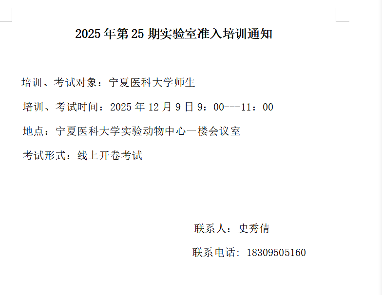 2025年第25期实验室准入培训通知-实验动物中心