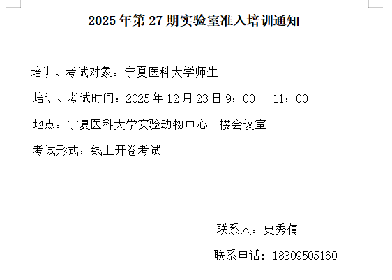 2025年第27期实验室准入培训通知-实验动物中心