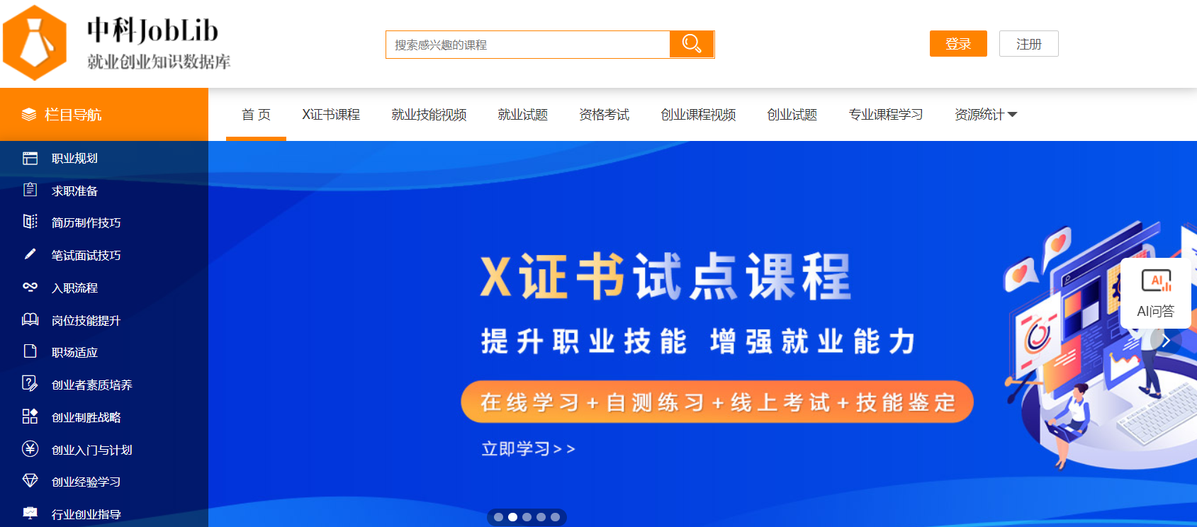 《中科JobLib就业创业知识数据库》以提升大学生职业技能与就业竞争力为核心目标,以视频课程为核心资源,通过“资源+平台+大数据+场景服务”耦合驱动的模式,将互联网大数据技术与情景化服务方式引入就业创业知识服务体系,具有知识资源权威、内容深度整合、学习工具全面、主动场景服务等特点。