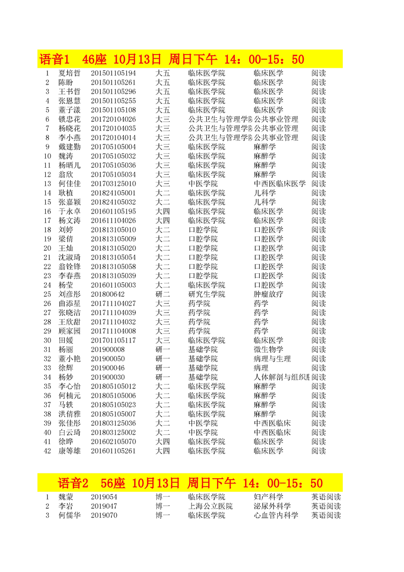 2019年外研社国才杯英语阅读比赛考场安排