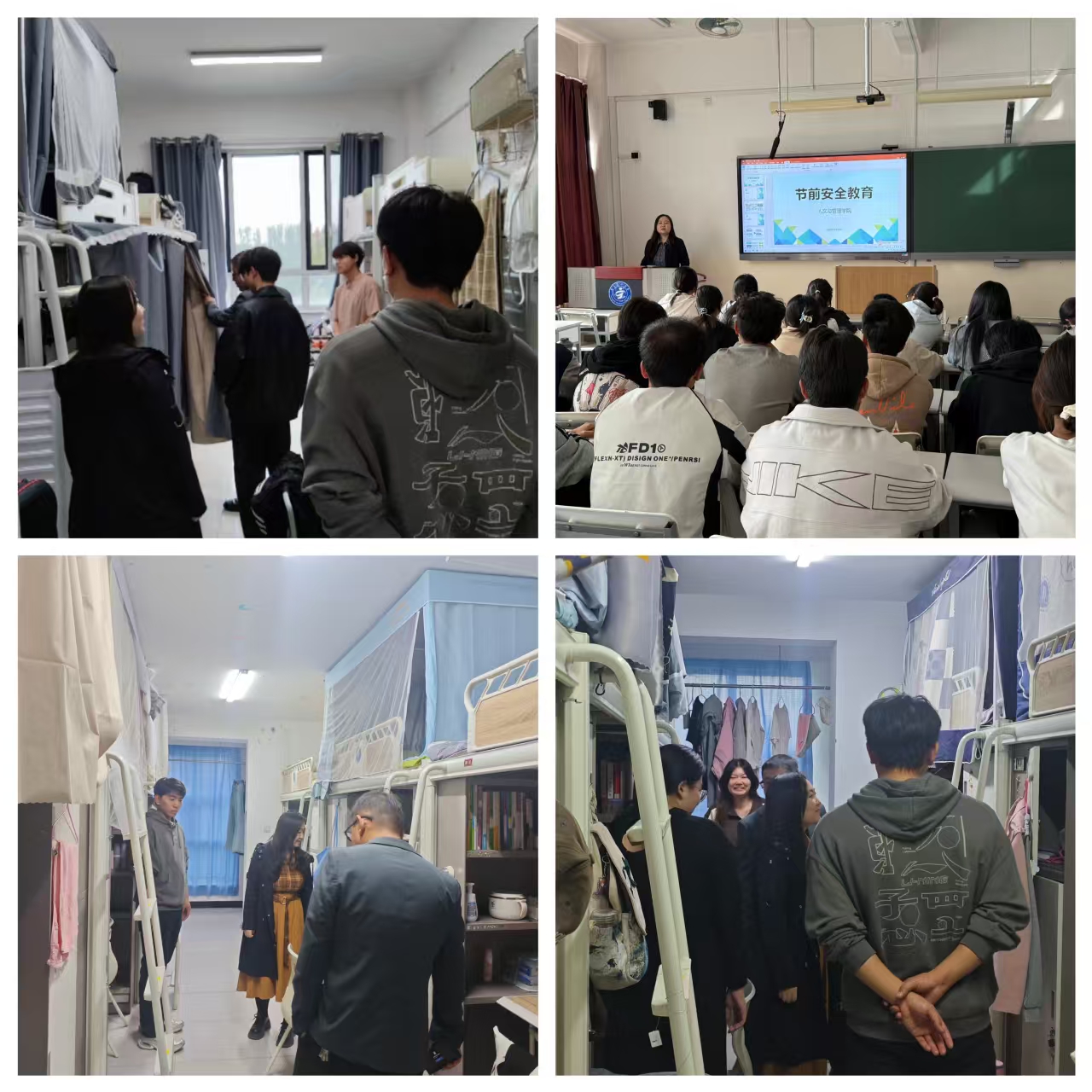 为保障学生国庆、中秋“双节”假期安全稳定,9月25-29日,人文与管理学院党委副书记李彦明带领学办主任和兼职辅导员,深入学生宿舍开展安全检查。重点排查用电安全、消防设施及违禁物品。同时围绕出行安全、饮食健康、防诈骗、意识形态、防溺水等方面开展警示教育,引导学生强化安全责任意识,切实提升学生安全防范与应急能力。