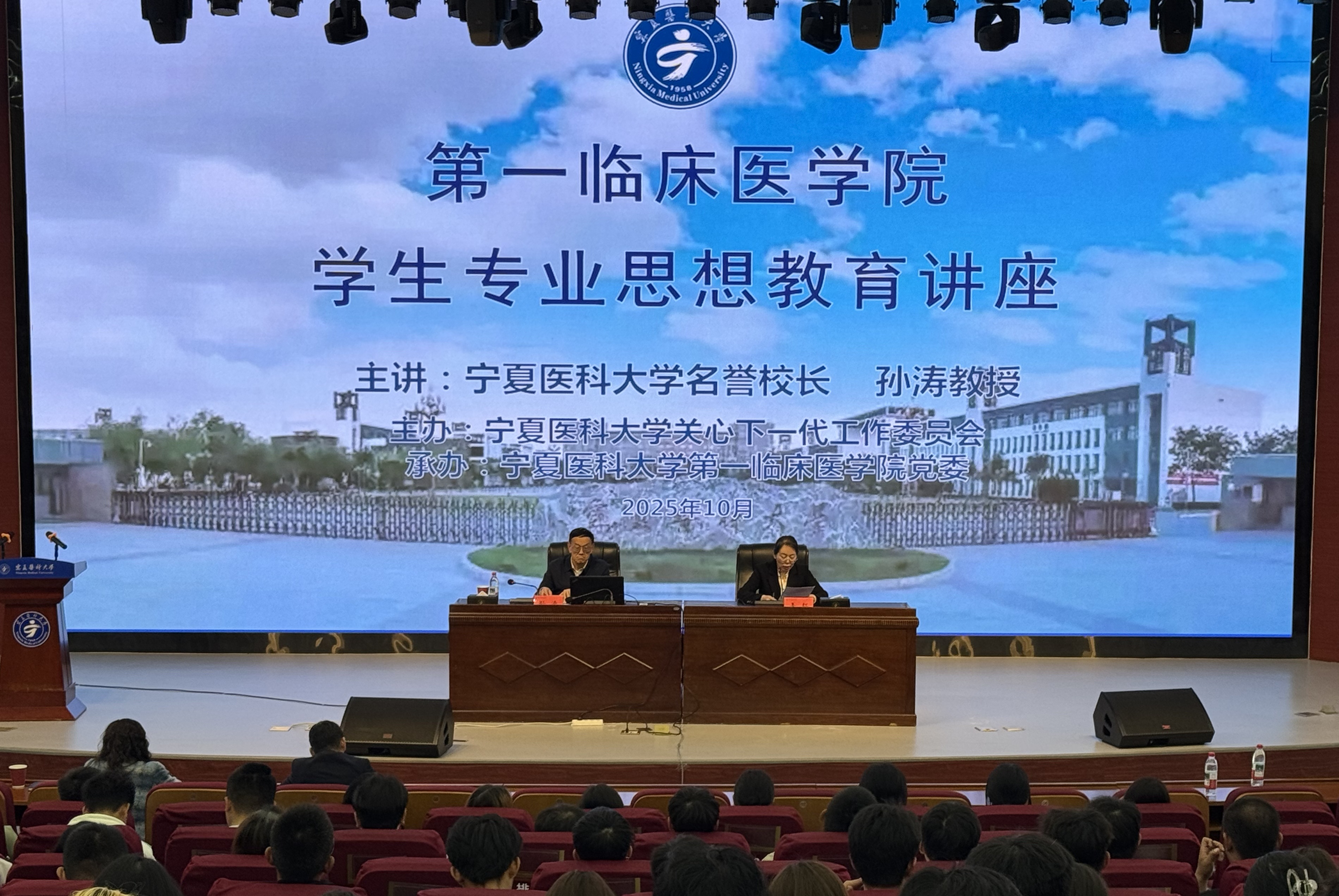 本次活动由宁夏医科大学关心下一代委员会主办,宁夏医科大学第一临床医学院党委承办。离退休干部处副处长刘斐斐、第一临床医学院专职组织员马宝立及辅导员老师参加活动。