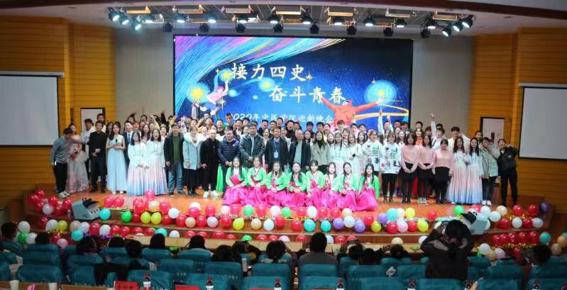 11月24日,中医学院在应谦楼教学楼启思学术报告厅举办2020年“接力四史·奋斗青春”主题迎新晚会,学院师生300余人观看节目。