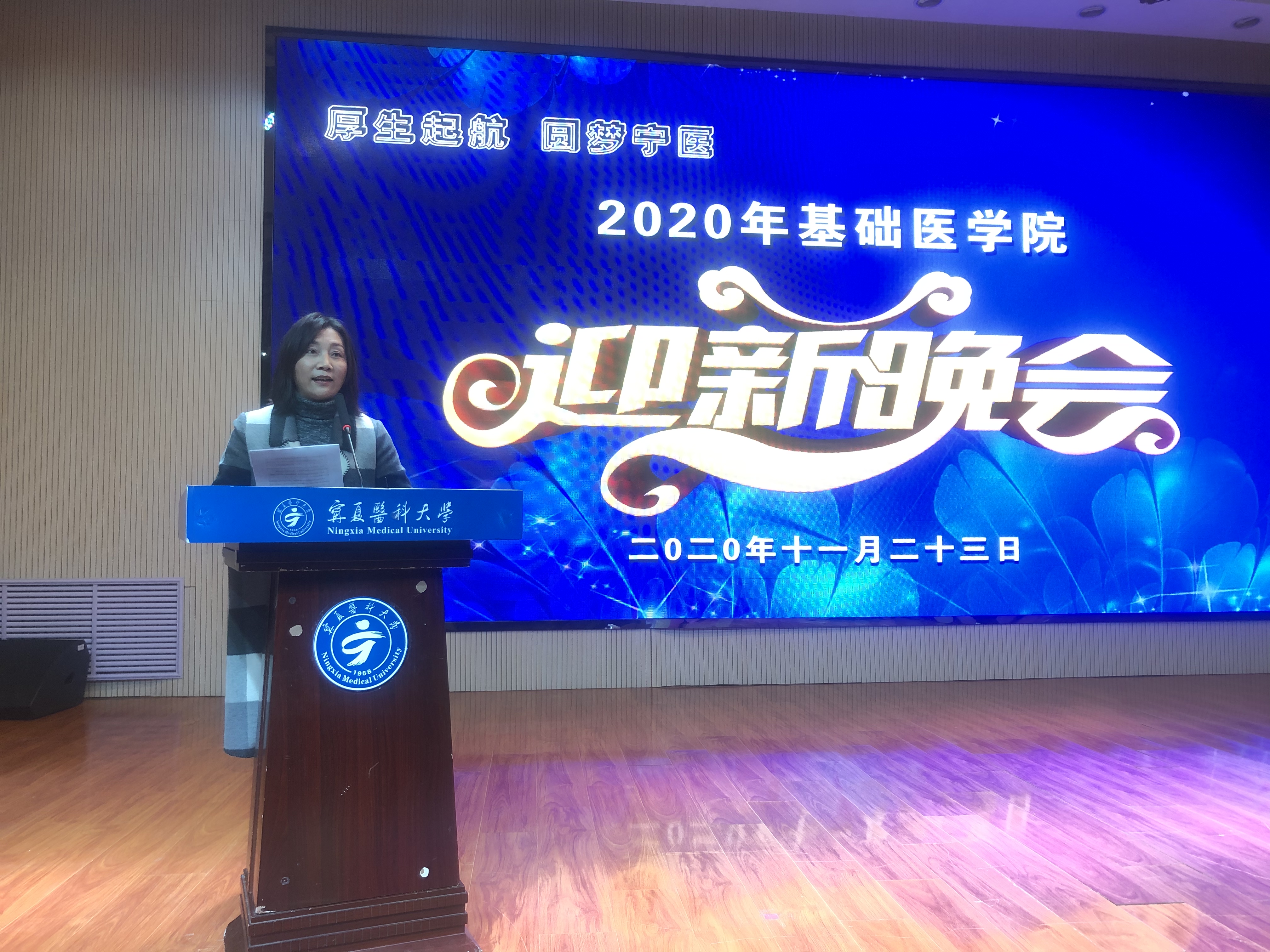 2020年11月23日,基础医学院2020年“厚生起航 圆梦宁医”迎新晚会在雁湖校区应谦楼启思学术报告厅举行。学院全体领导与师生代表共计300余人观看了晚会。