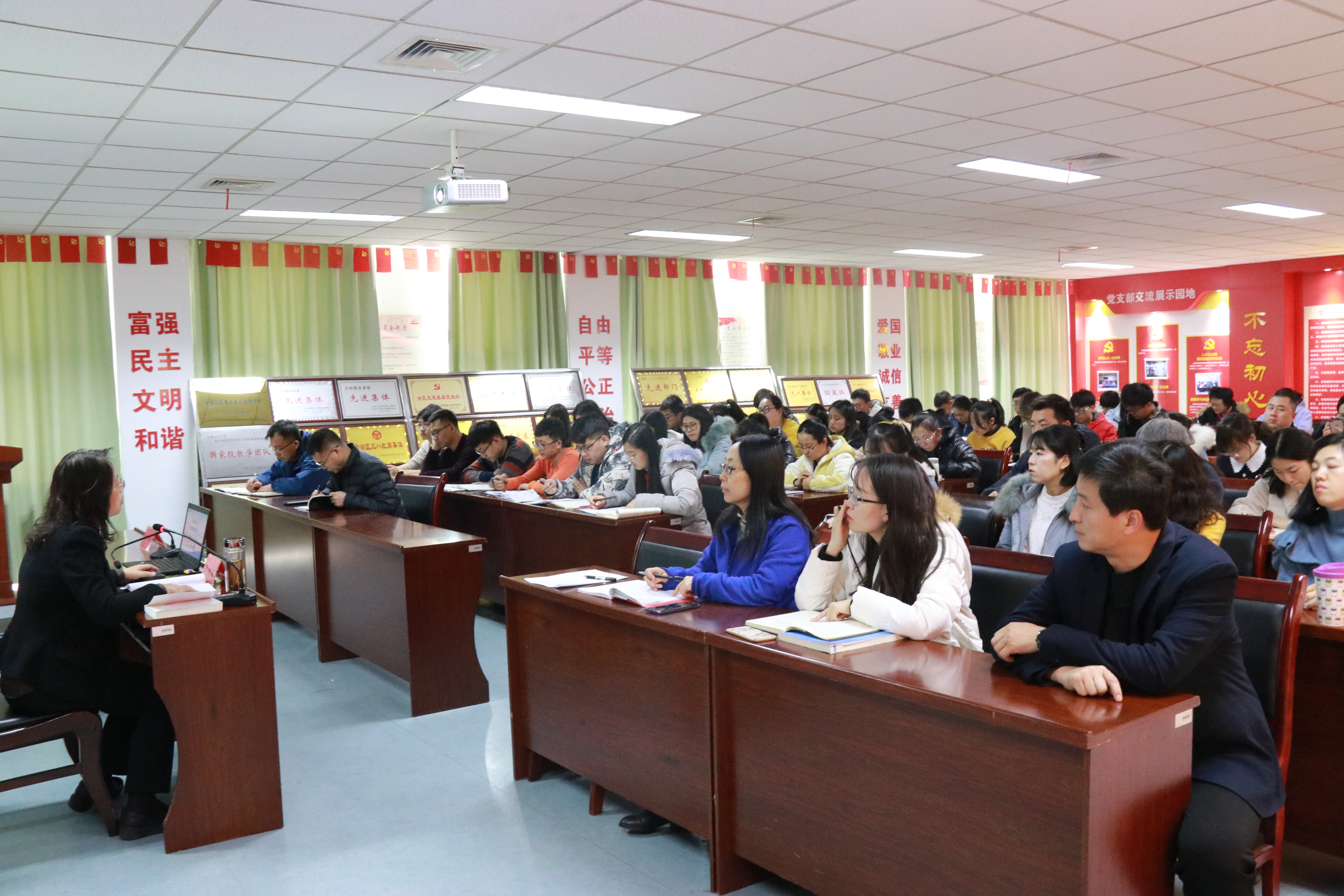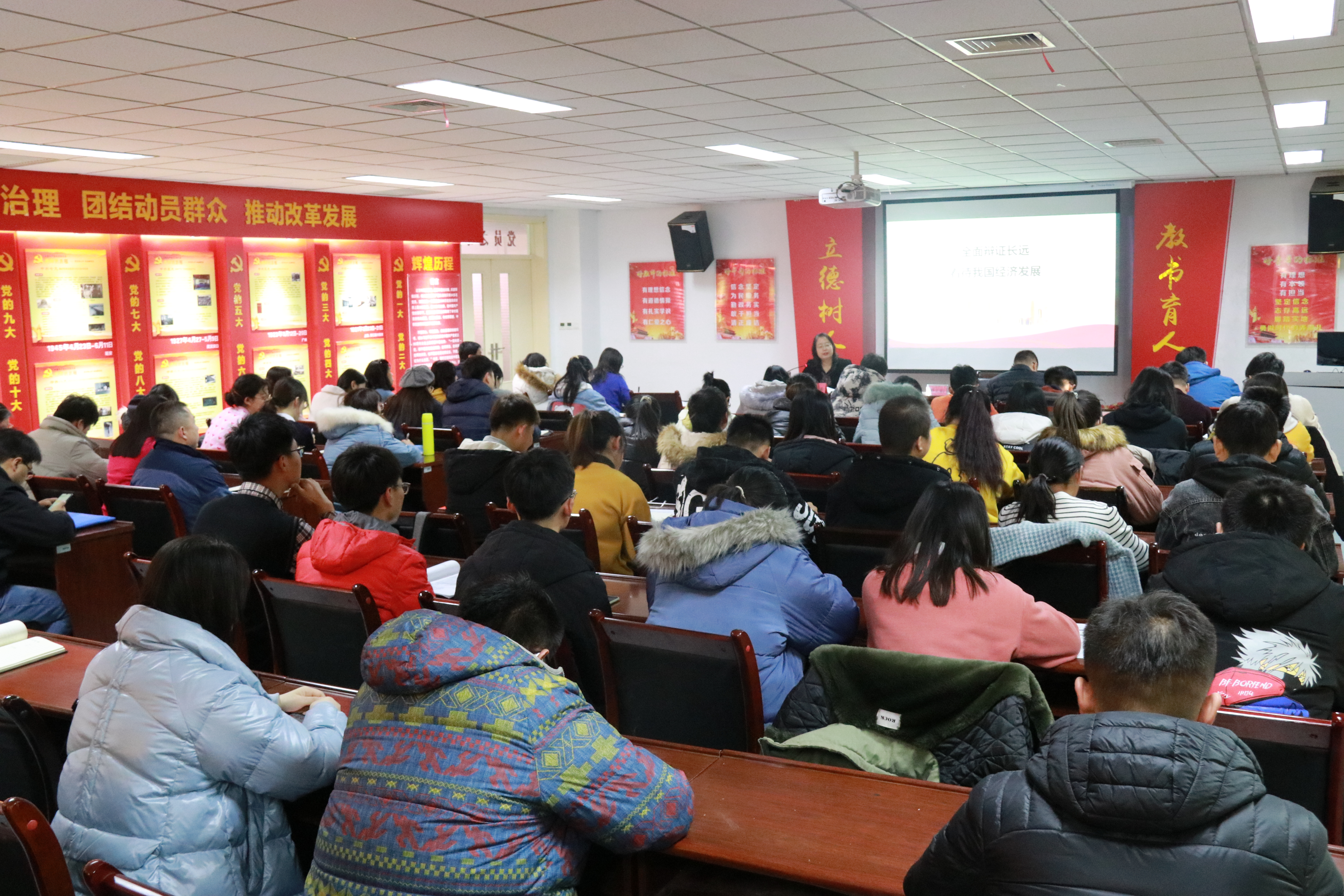 11月25日下午,学校副校长郝银菊以《全面辩证长远看待我国经济发展》为题,在雁湖校区厚生楼三楼党员之家为基础医学院师生作形势与政策专题报告。全体党支部书记、委员、2017级生物技术班全体同学、研究生第一支部全体党员和教师代表100余人聆听了报告。