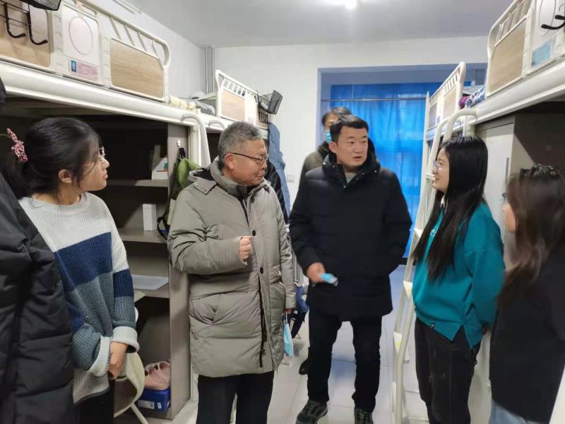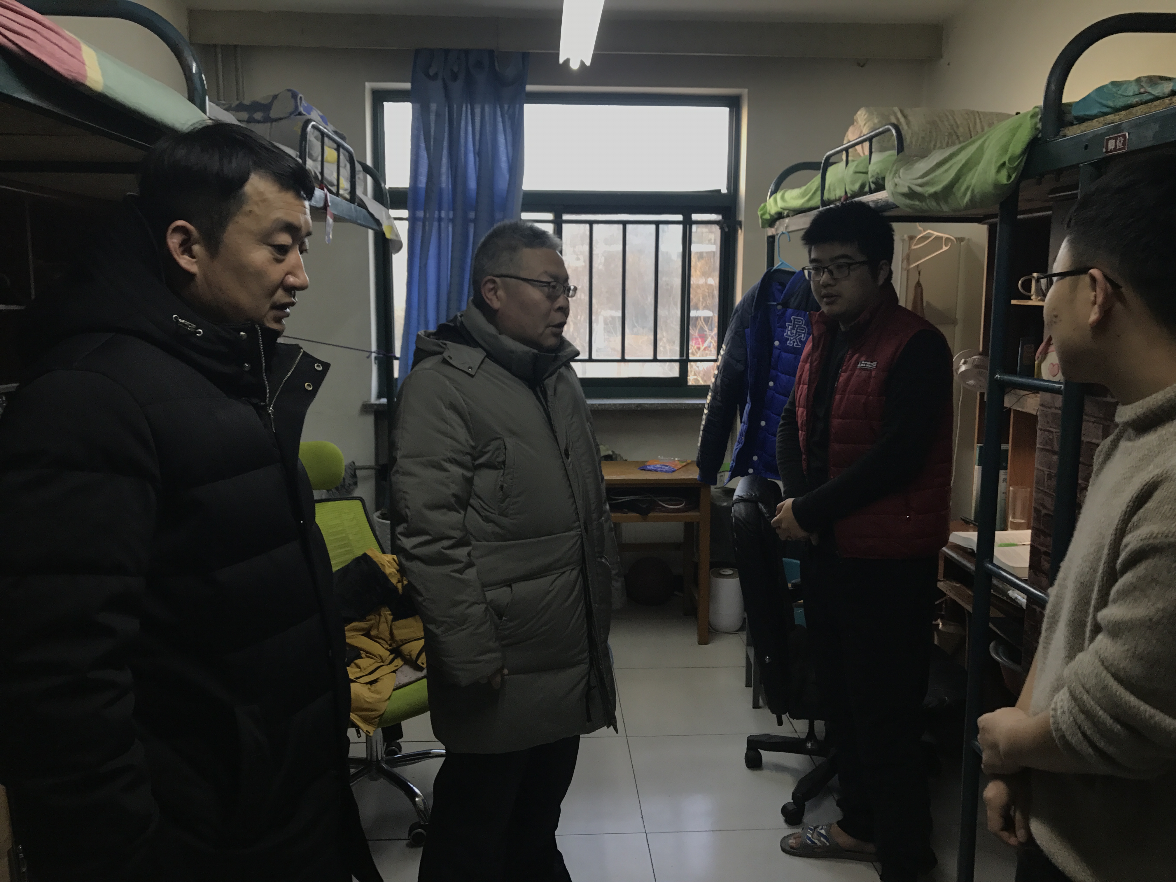 1月5日下午,学校党委朱建华副书记在学生处、研工部、后勤管理处、保卫处等部门负责人陪同下走访了学生宿舍。