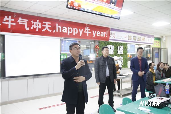 在气氛暖意融融的现场,姜怡邓代表学校为学生们送上了新年祝福,希望大家珍惜大学生活,合理安排假期,认真学习,健康成长,在2021年里取得新的收获。同时也叮嘱大家要及时与家人联系,报平安、报幸福。同学们纷纷表示感谢学校的关心关爱,在宁医的春节更是温馨而难忘。